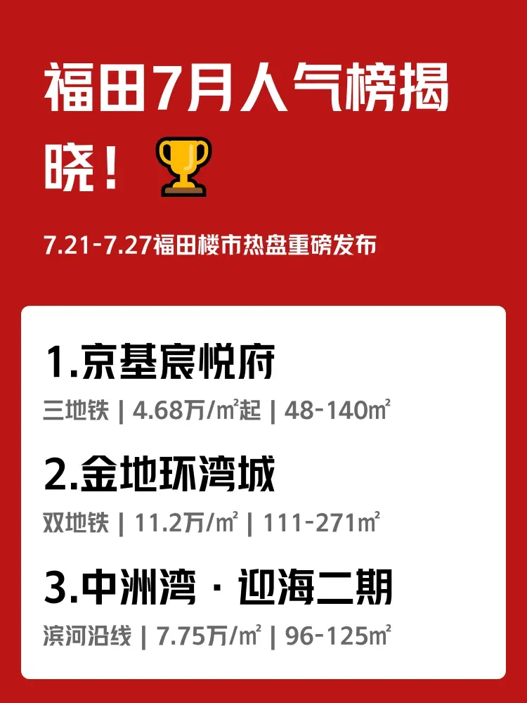 🔥上周(7.21-7.27)福田看房热度暴涨!三大人气盘占据全市热度榜TOP10,每天通勤挤成沙丁鱼罐头vs出地铁站5分钟到家,你会怎么选?