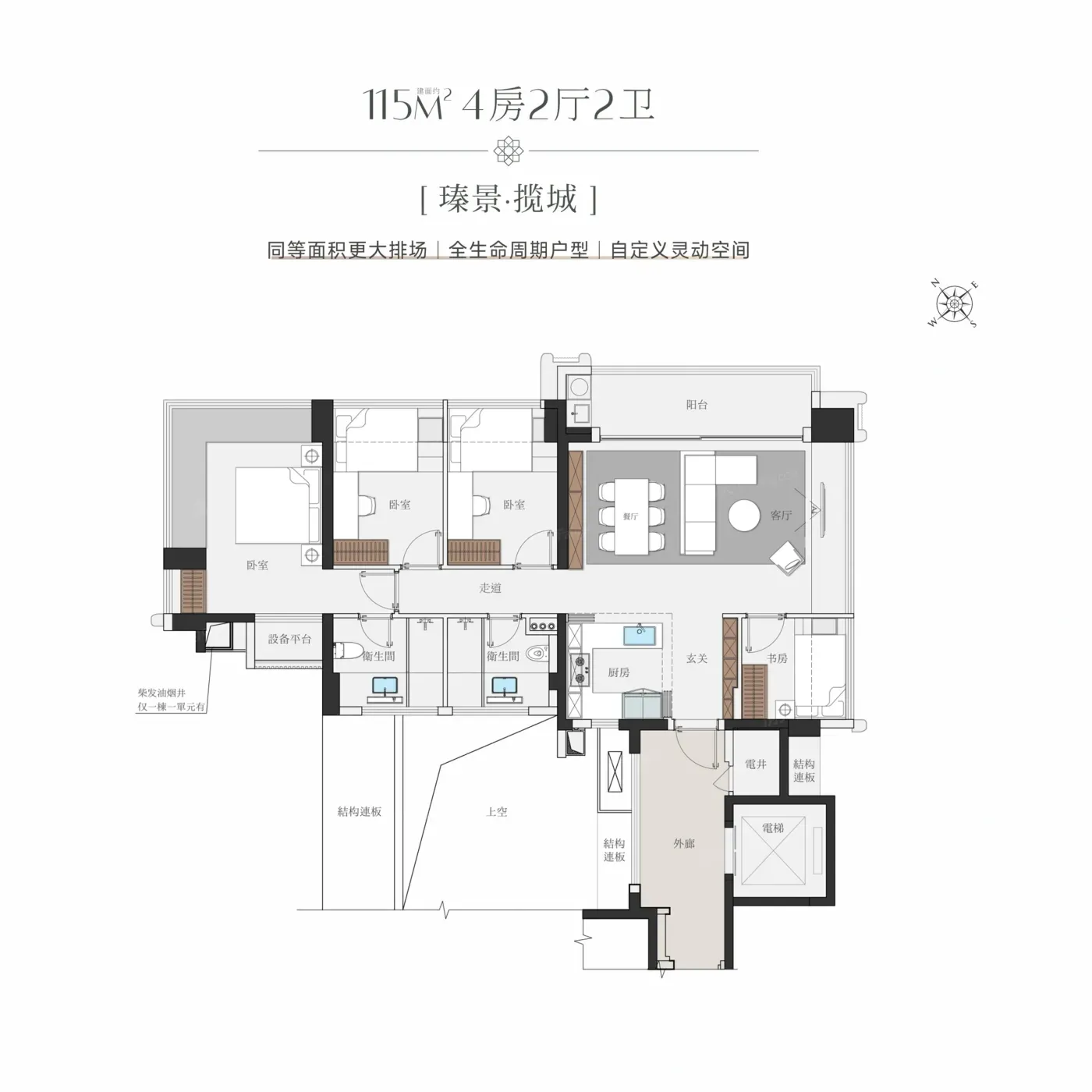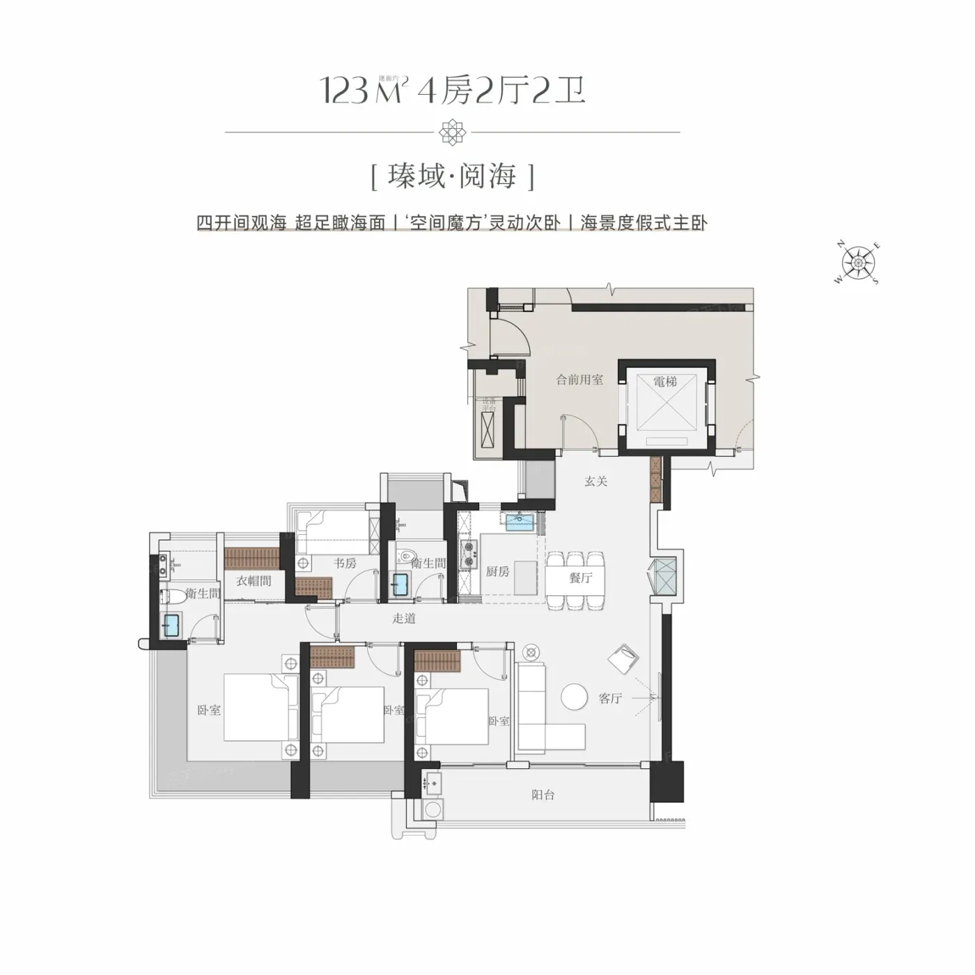 在户型设计上,项目完美诠释“能偷面积绝不浪费”:主卧三面采光+270°转角飘窗,电梯厅能改出3㎡收纳区。更绝的是西侧突然改规成学校用地,6层以上就能永久看海,122㎡户型双面海景直接拉满居住buff。