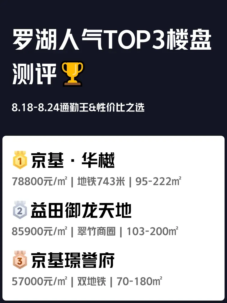 🔥上周(8.18-8.24)罗湖购房热度爆表!每天挤地铁3小时 vs 步行5分钟到公司,你选哪个?实测榜单前三项目,总有一款戳中你痛点👇