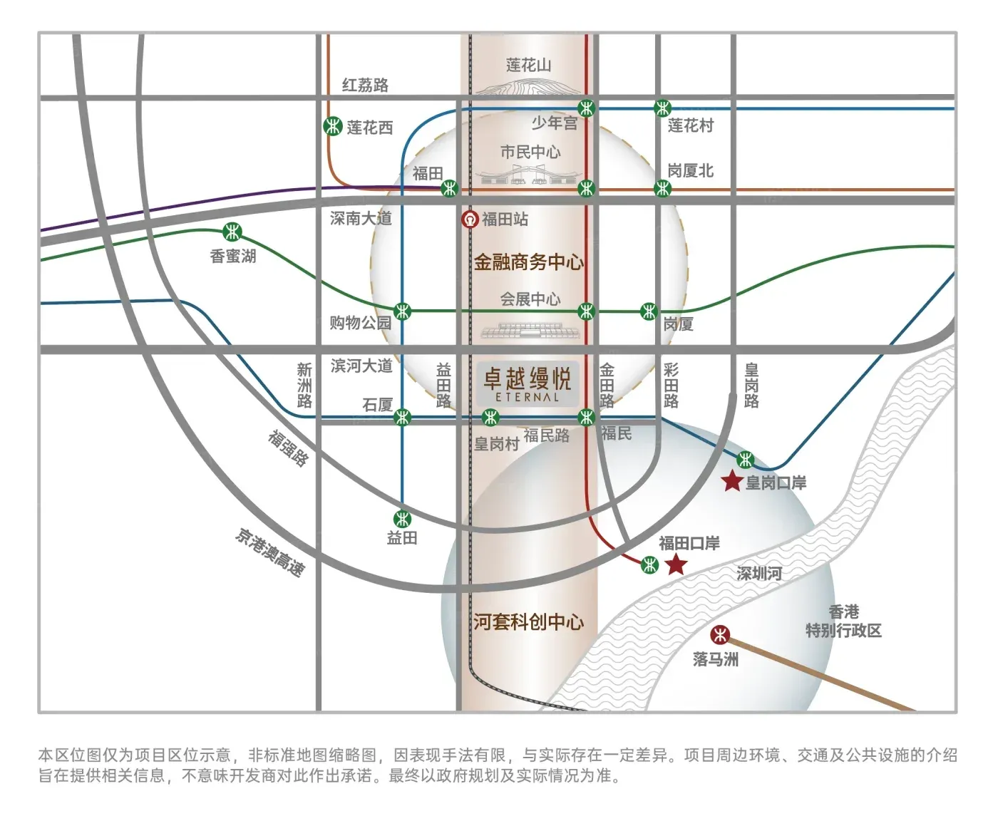 卓越缦悦的底气来自黄金三角坐标:皇岗村站268米+福民站298米双地铁,步行5分钟直达水围1368文化街区。真正打动新生代家庭的是在建的新皇岗口岸——2026年24h通关后,深港双城生活将成日常。不过8.7的容积率让小区公共空间略显局促,22%的绿化在福田新盘中不算亮眼。