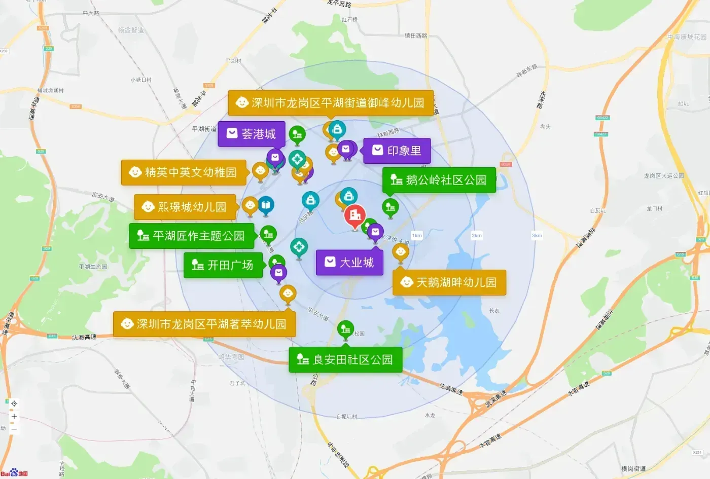 1. 教育配套直接封神!下楼就是自家幼儿园,隔壁平湖实验学校中考录取线片区第一,往东800米还有在建的园岭学校。朋友指着教室方向说:"以后送完娃还能顺路买杯咖啡上班。"