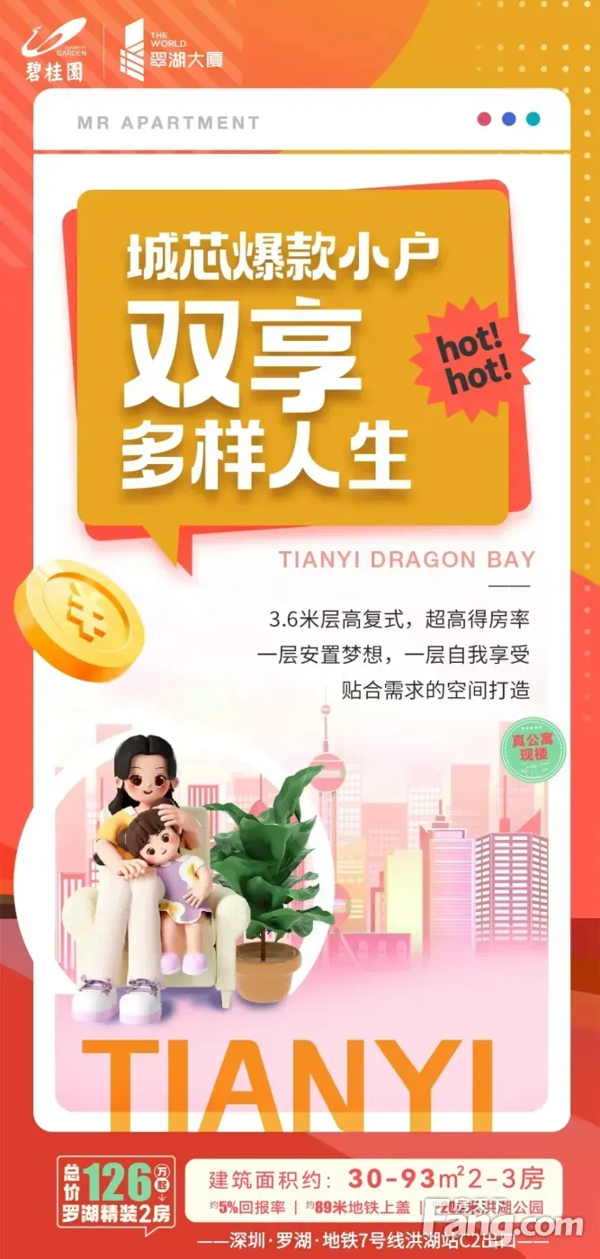 #碧桂园翠湖大厦 爆款公寓米约3.6米层高买一层送一层低总价126万起 约5%回报率即将全线涨价3%赶紧抢购