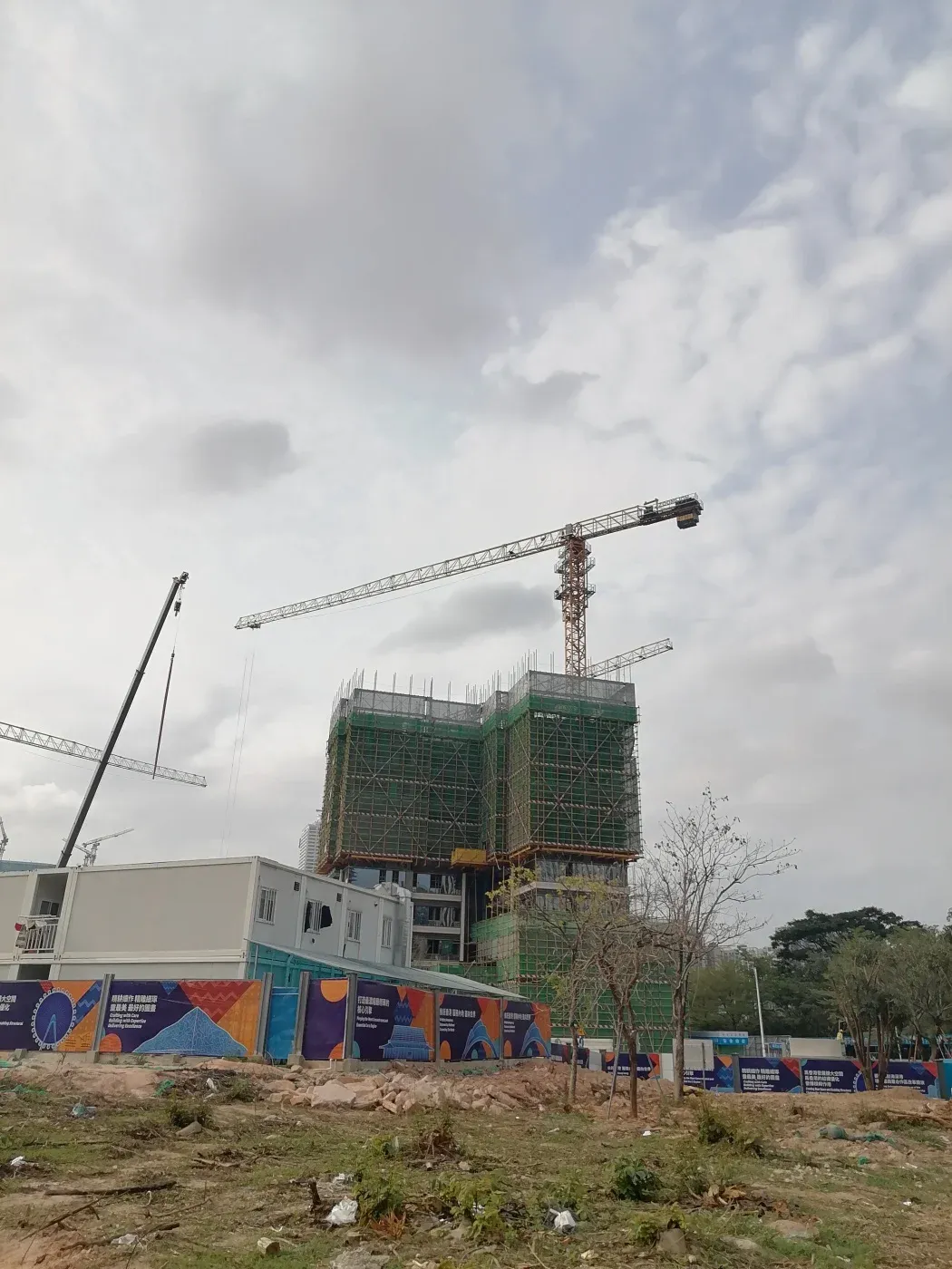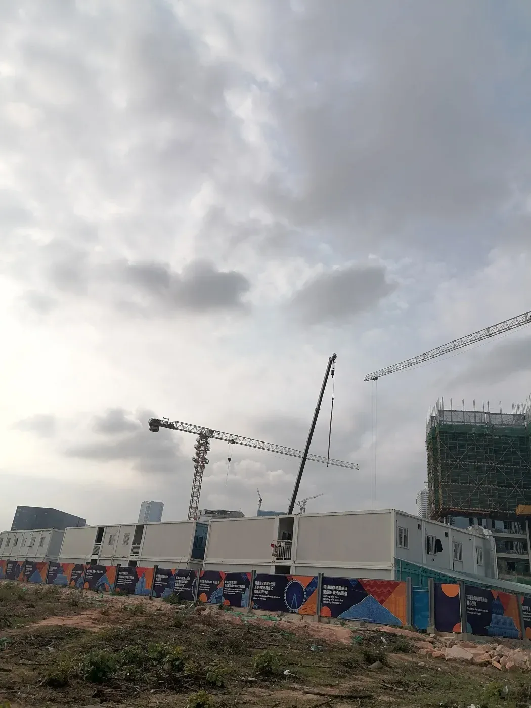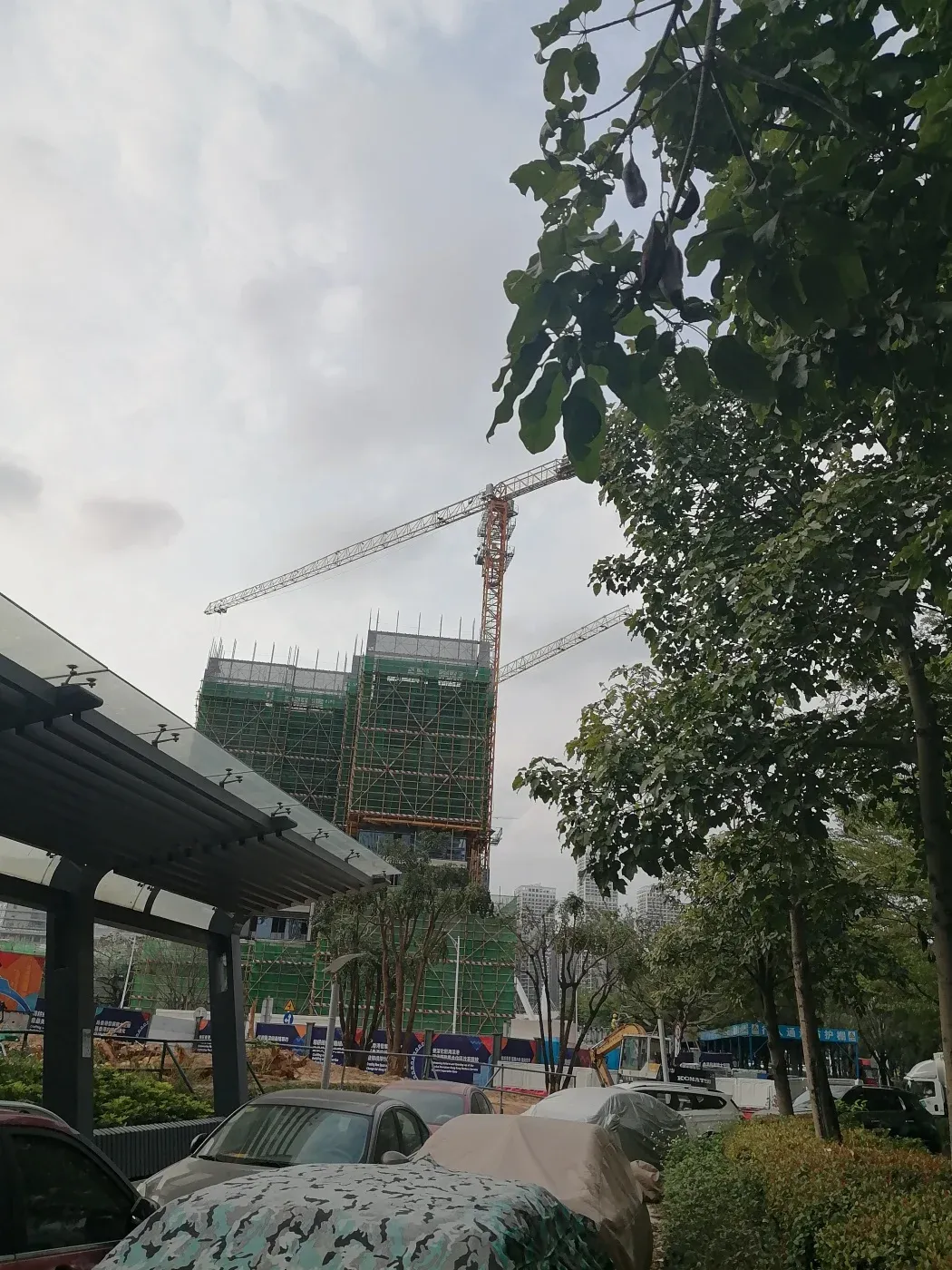 今天实地探访了前海热门楼盘招商海晏府!🏗️现场施工如火如荼,外立面已初见雏形。随手拍下最新工程进度图(见图),绿化带正在铺设,30%绿化率让社区充满生机🌿。项目位于桂湾一路与梦海大道交汇处,属地铁沿线项目,通勤便利🚇。