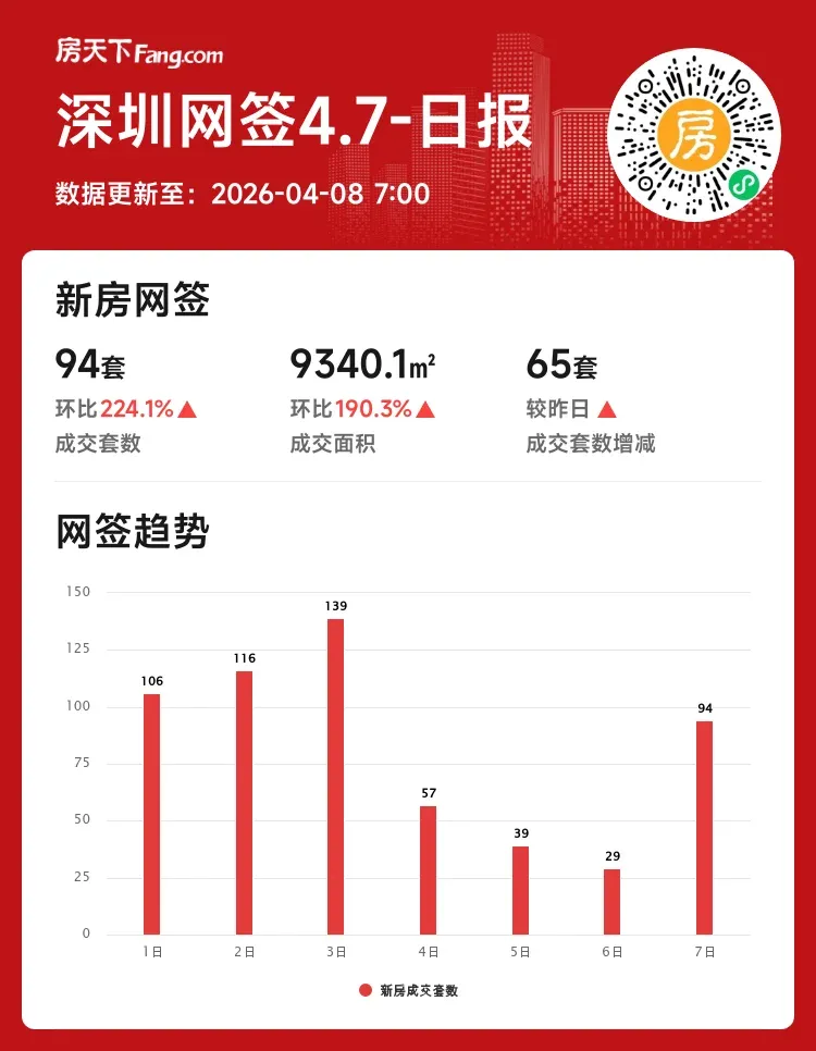 成交套数:94套 ↑224.1%(较昨日增65套)