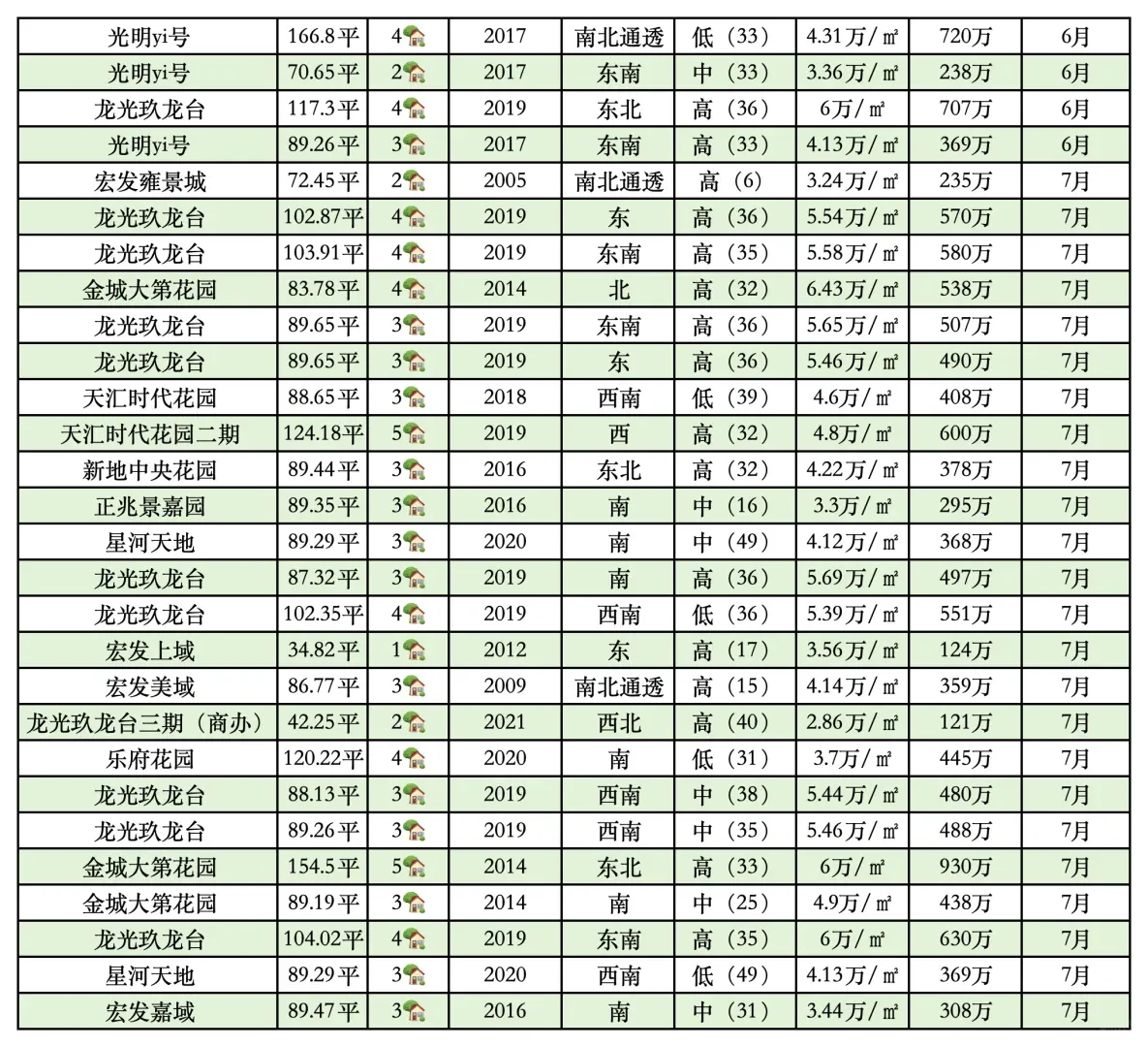 细究这两份深圳光明近两月成交数据,比较热门的小区也就那几个(龙光 宏发 ),四五万的均价,不过不在水平线的大户型小户型也挺多。