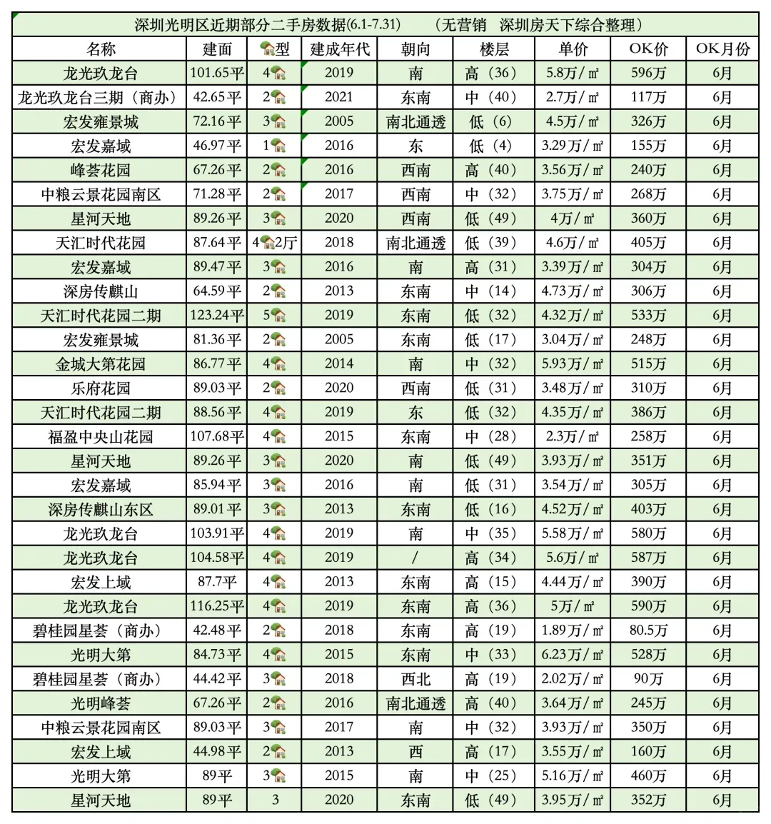 回看六七月的深圳光明二手房市场,换手率大不如前,七月光明只有65套的成绩,排在全深圳之9️⃣(龙岗七月有1005套)。冰冷之下,自然无法冷静。