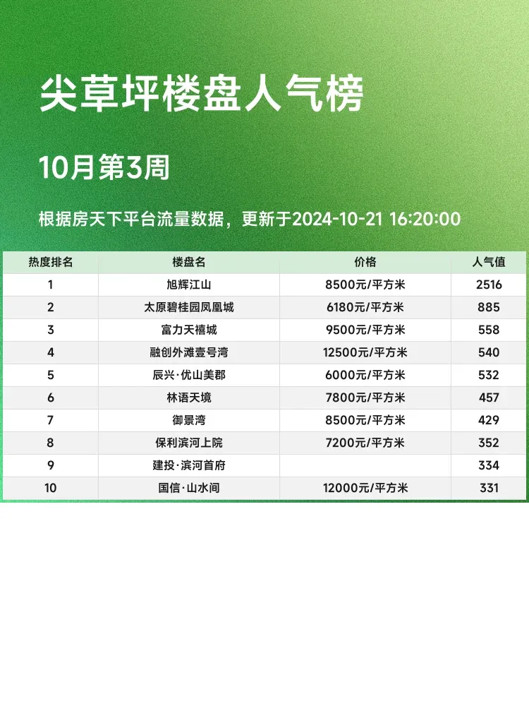 在如今竞争激烈的房地产市场中,选择一个适合的楼盘变得至关重要。了解哪些楼盘人气高,不仅能够帮助购房者把握市场动态,还能为您提供更多的优质选择。我们一起来看看尖草坪区域的人气楼盘榜单,揭开它们的魅力和价值吧!📈🏆