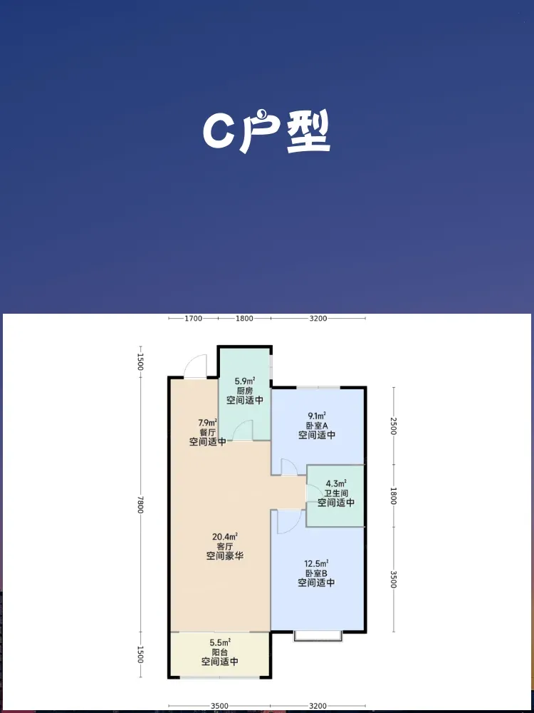 🌟C户型(2室2厅1卫,84㎡)