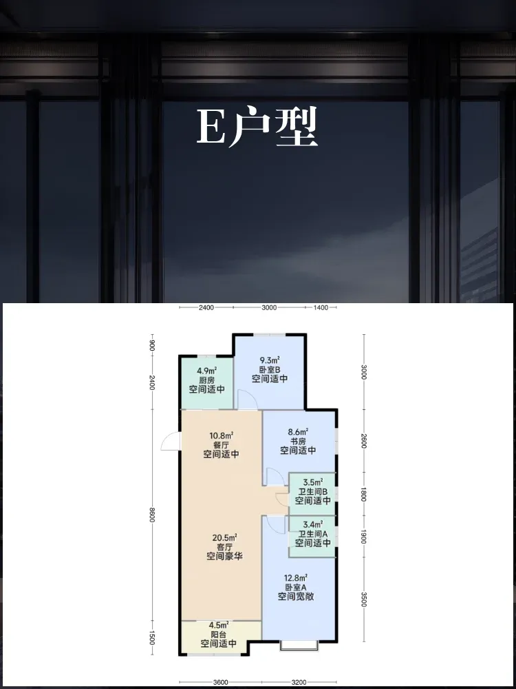 🌟E户型(3室2厅2卫,116㎡)