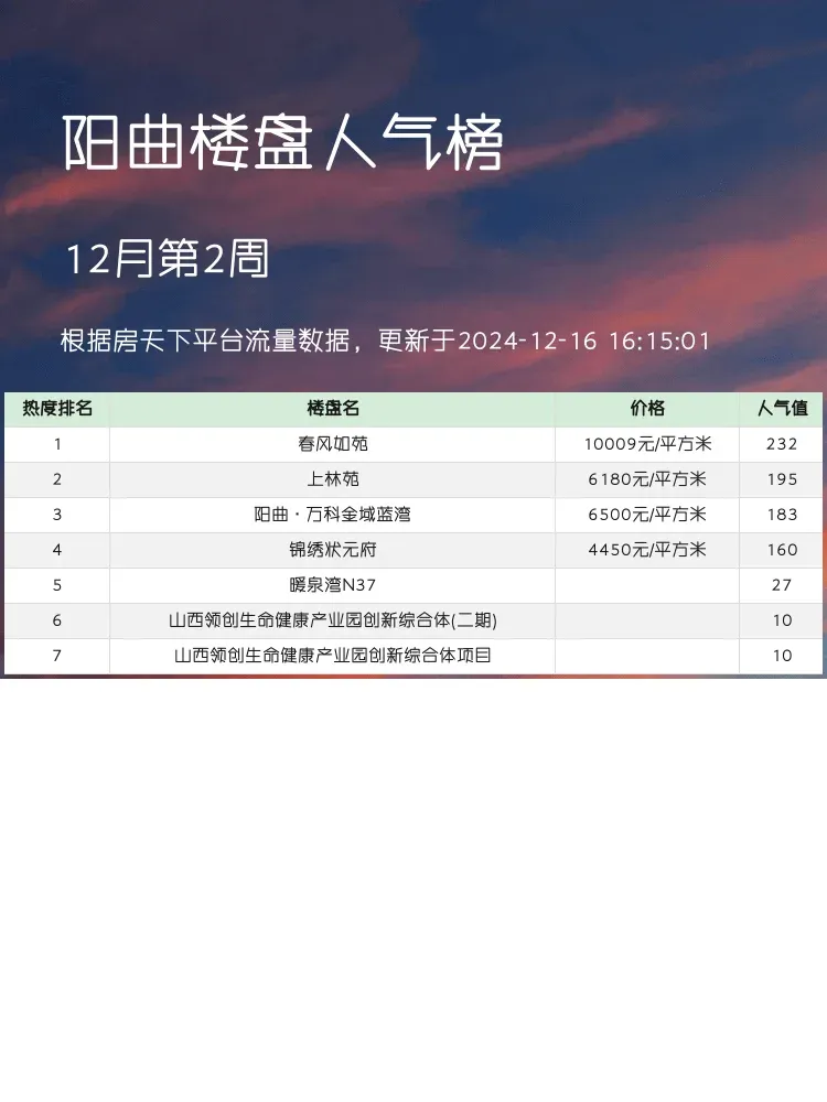 这份阳曲区域的人气楼盘榜单为你提供了直观的选房参考,从户型到交通,再到教育配套,这些都是购房者关注的重点。希望能助你找到心仪的家!✨