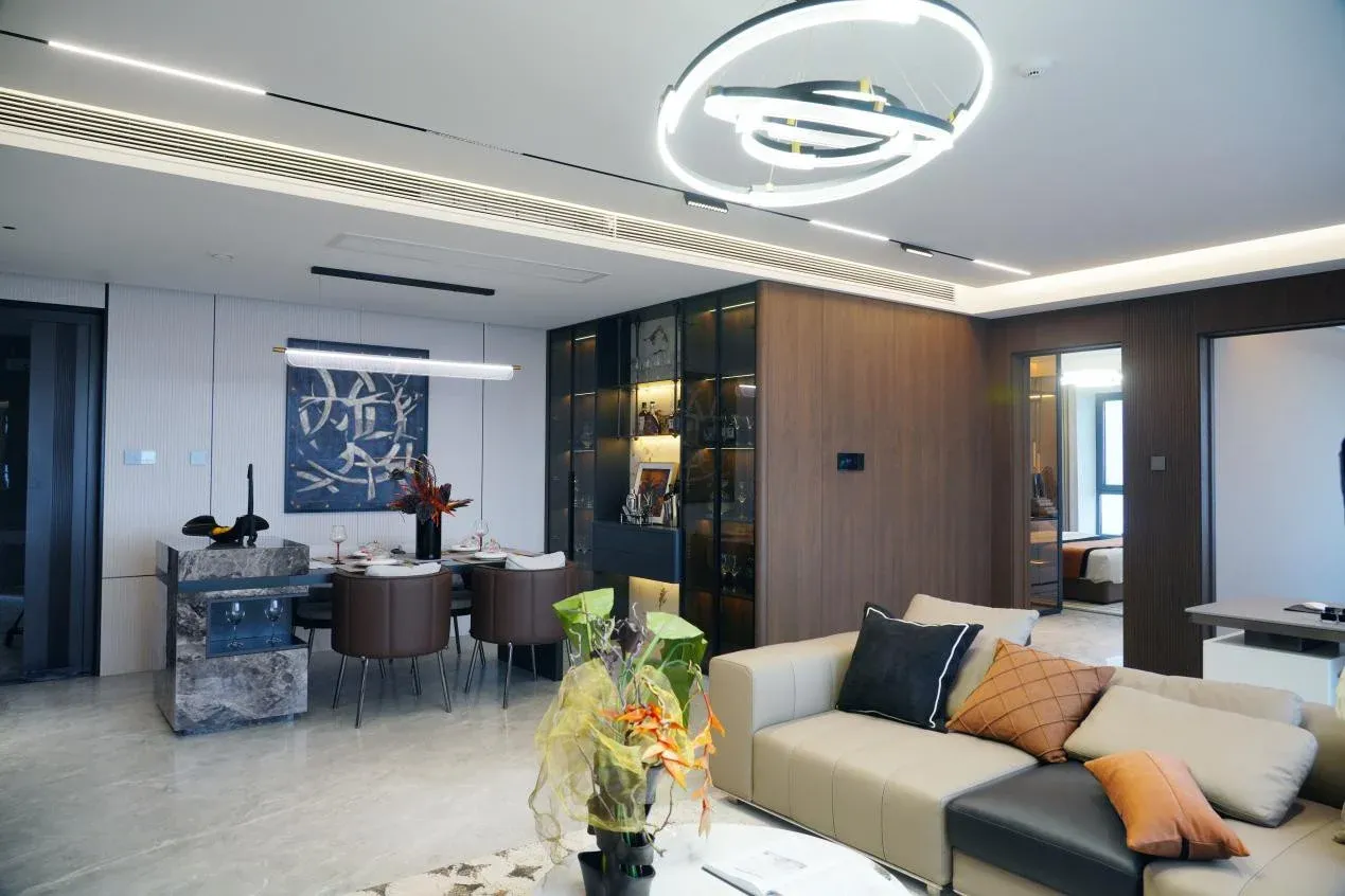 此外,小编还发现津樾府的毛坯房与其他的毛坯房有所不同,这里还装备了新风系统和品牌子母入户门,并配备了指纹密码锁。这种升级版的毛坯房既将隐蔽工程做到位,又保留了家装设计的创意空间,可以说是一种符合客户需求的交付模式。工作人员告诉小编,为了避免城市中心的噪音干扰,项目特意采用了Low-e双层中空玻璃。小编用手开窗试了一下,果然在窗户关上的瞬间,室内变得十分安静。