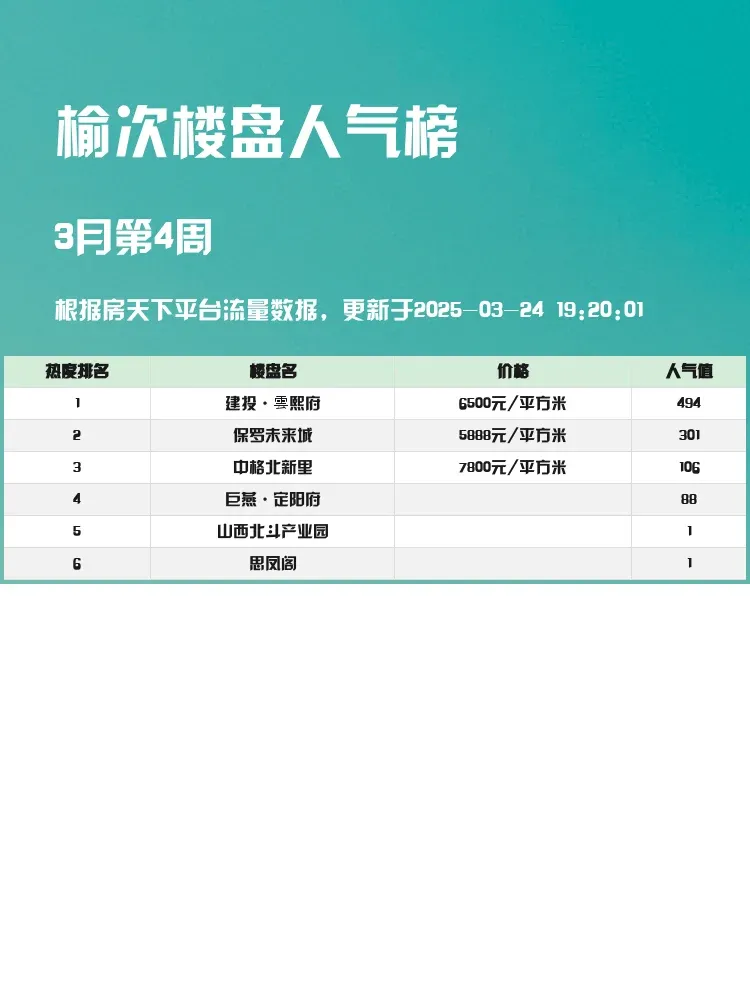 这份榜单帮你快速了解榆次热门楼盘,选房更省心!💼