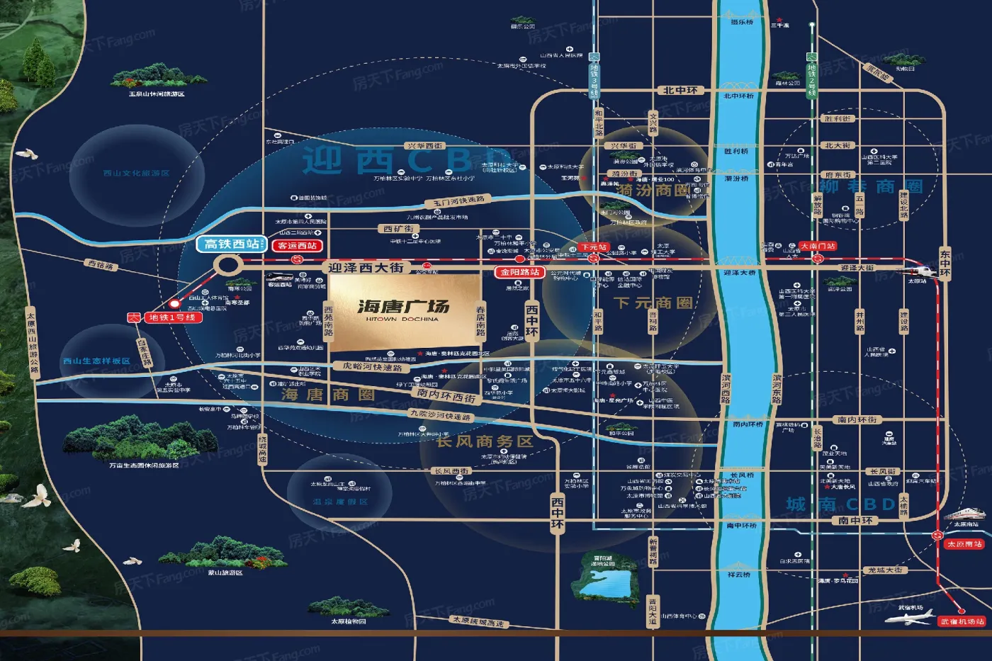 刚开始听说西客站商圈,以为在荒郊野外?直到看见海唐广场周边3公里内的配置:1所三甲医院+4家银行总部+2个地铁口,商圈成熟度远超预期!