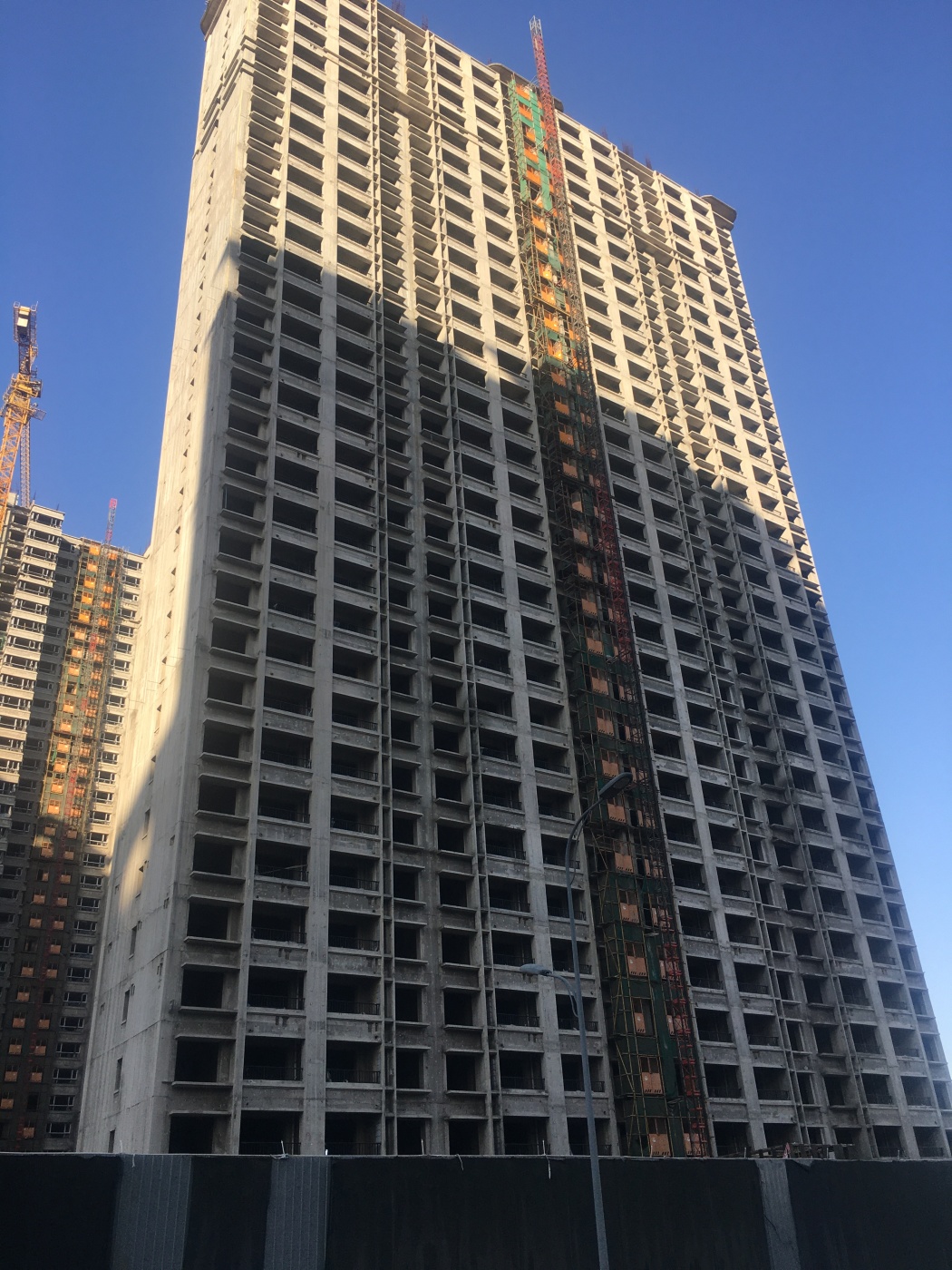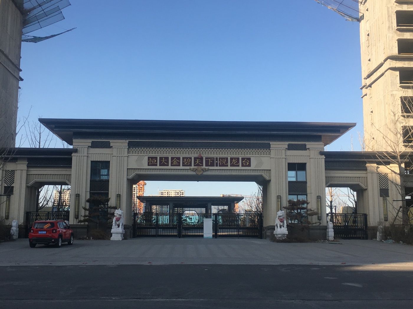 昨天陪闺蜜去综改区看房,在恒大金碧天下工地外等网约车时,突然发现五期塔吊转得飞起!保安大叔说地库已经完成混凝土浇筑,楼顶造型钢架也运进来了。