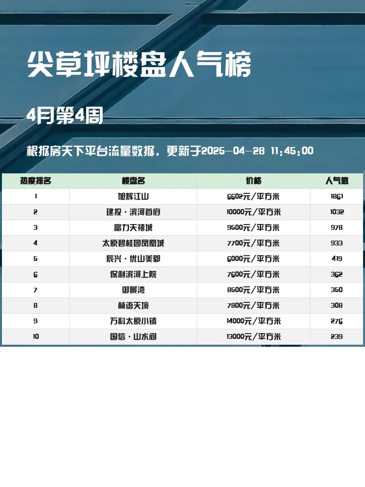 买房选对楼盘太重要啦!🏠 这份尖草坪区人气榜单帮你避开雷区,从地段、价格、配套多维度筛选出真正值得入手的楼盘✨ 当前市场下,性价比和居住舒适度才是王道,快来看看有没有你的心动选项~