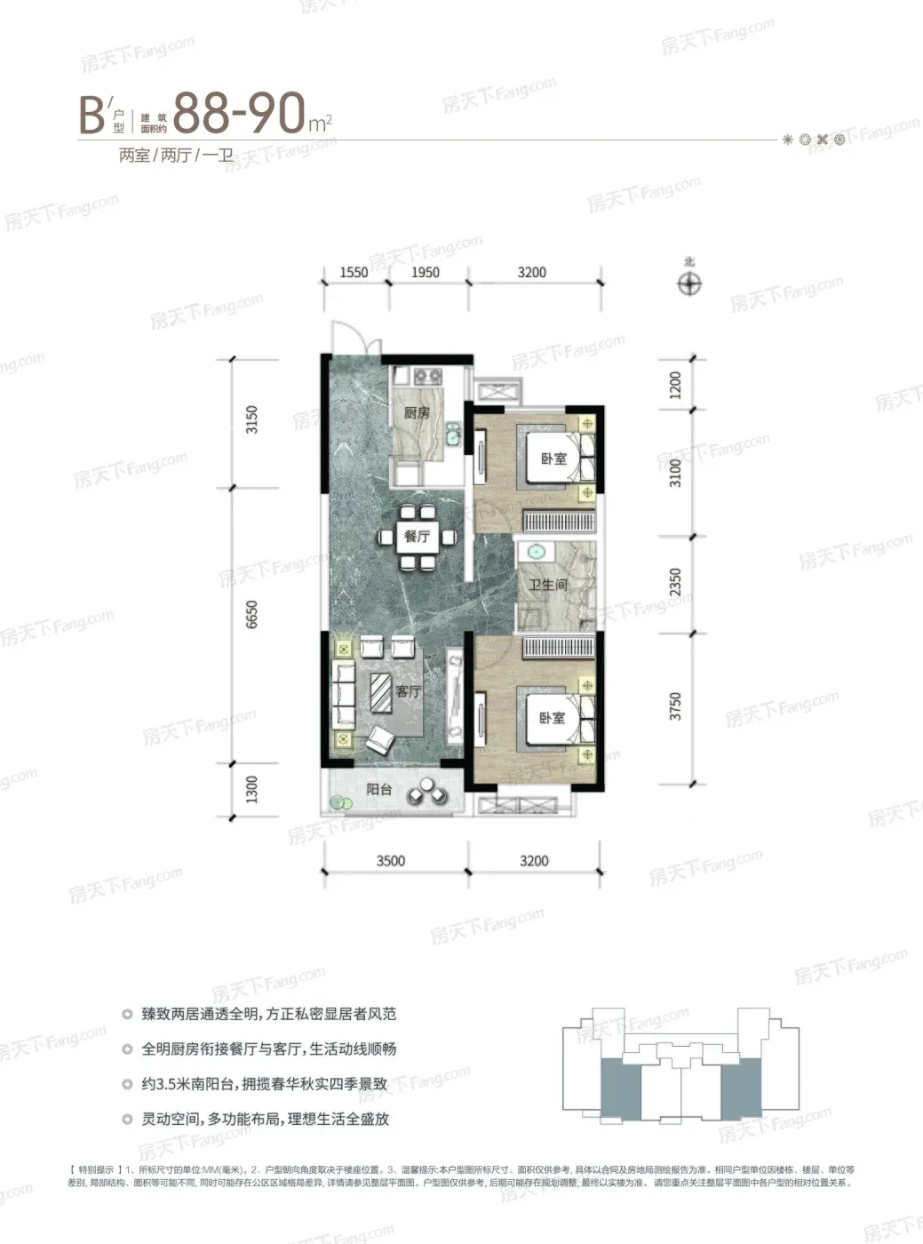 ③88平三居室户型确实能改书房,但飘窗面积算赠送吗?