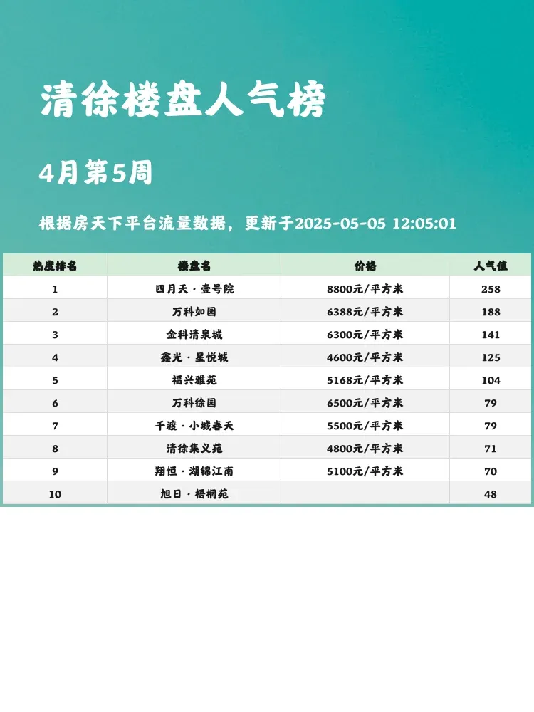 买房选对楼盘太重要啦!💯当前市场下,性价比+配套+户型成为购房者三大核心考量✨这份清徐人气楼盘榜单,真实反映市场热度,帮你快速锁定优质选项~快来看看TOP3花落谁家👇