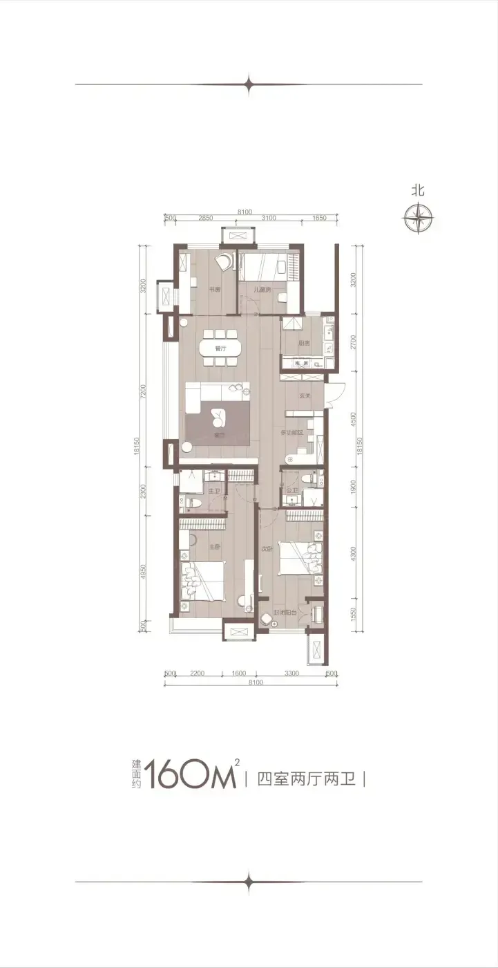 更戳我的是四叶草户型设计,把148㎡玩出花活:儿童房和老人房隔着客厅对角相望,既保证两代人作息互不干扰,又能在公共区共享家庭时光。主卧套间直接承包整个南向面宽,带独立衣帽间和270°转角飘窗,这配置放在主城实属稀有物种。