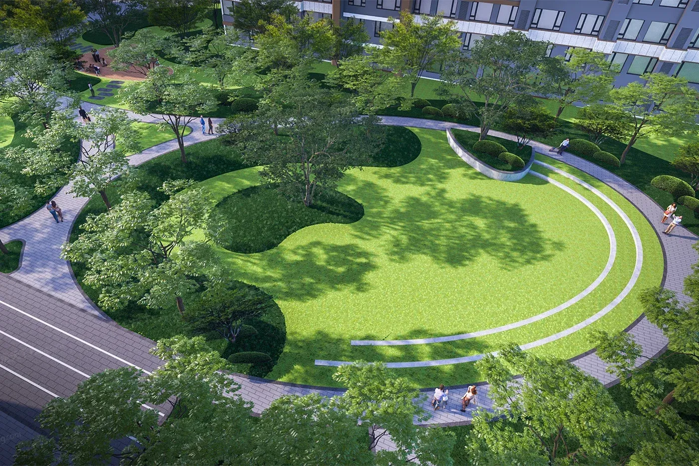 容积率3.5+40%绿化率构成低密生态住区,楼栋排布兼顾采光与景观视野;
