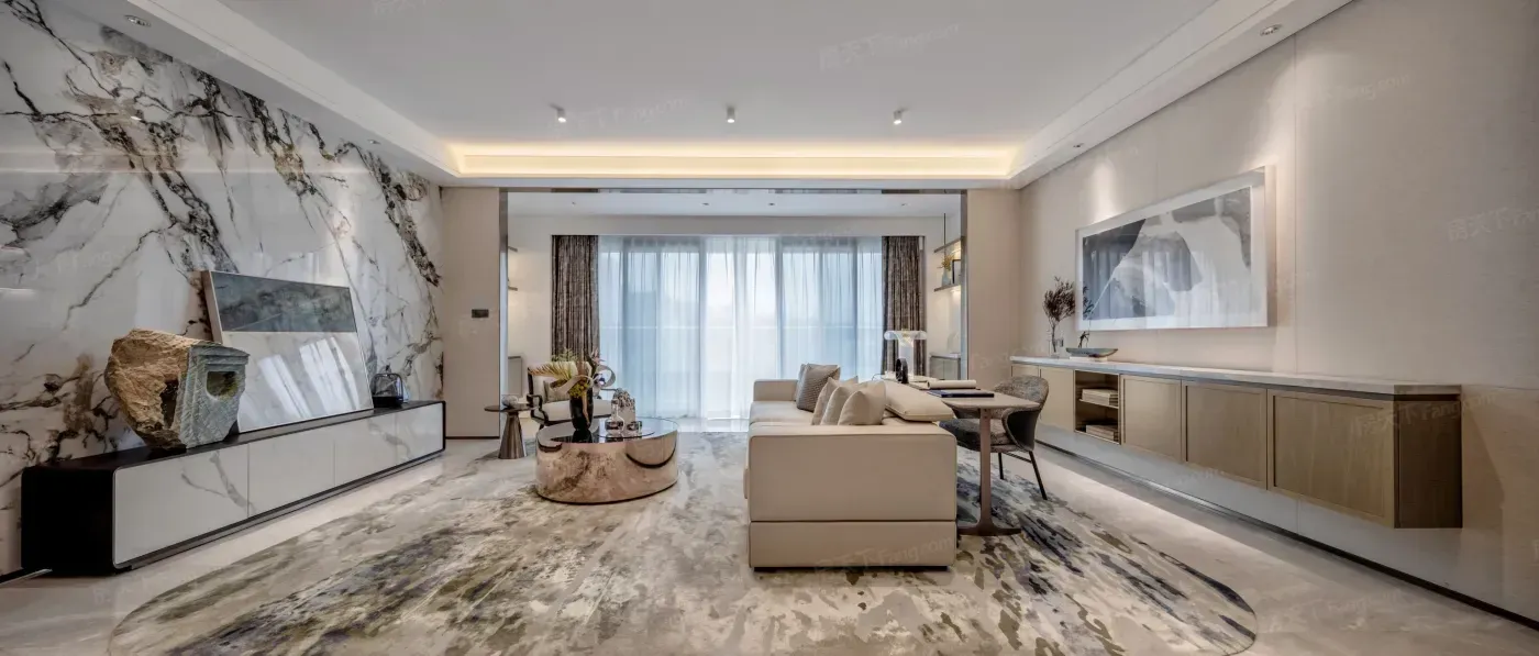 210㎡四居室的洄游式动线堪称教科书:玄关柜暗藏折叠行李架,飘窗可秒变茶歇台。但部分户型入户门正对电梯井,私密性需用软装弥补。