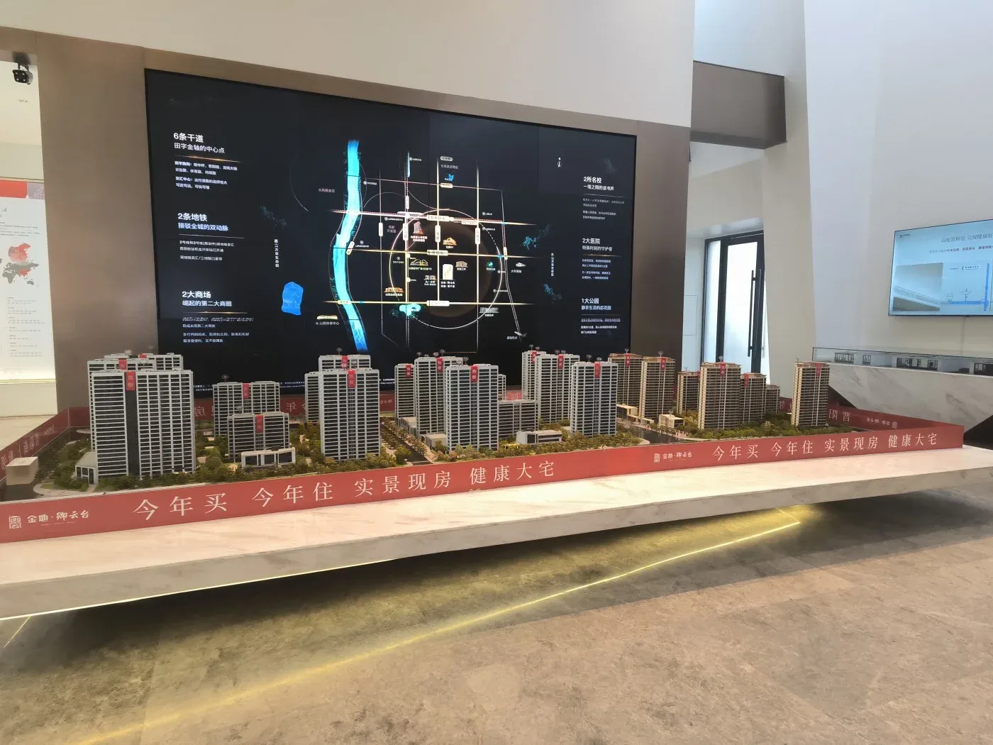 今天实地探访了位于晋阳街与体育路交汇处的金地阅千峯项目,现场拍摄了最新工程进度图👷。项目由金地集团开发,定位改善型住宅,外立面采用现代简约风格,小区内绿化造景已初步成型🌳。售楼处展示了精装交付标准样板间,整体质感符合品牌开发商水准✨。