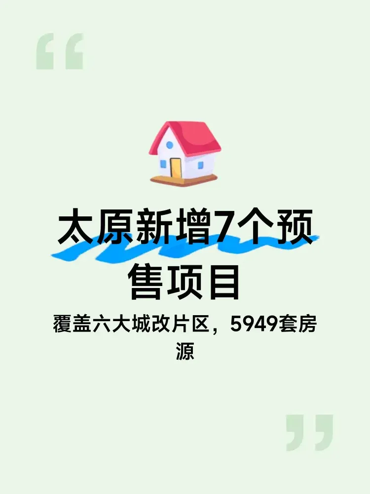 据太原市相关部门最新公示信息,2026年1月24日至2月6日期间,太原市新增7个商品房预售项目,涉及狄村、王家峰、杨家峪等6个城改片区,共计新增房源5949套,预售总面积达251185.67平方米。其中住宅类房源85498.27平方米,商业类165687.4平方米。