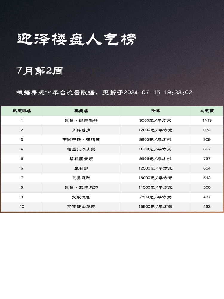 🏡📊【人气楼盘榜单】🏡📊