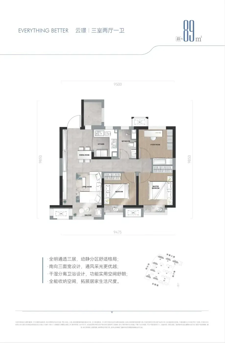 闺蜜在塘沽看中的新房彻底颠覆我认知!中国铁建滨海云帆新推的89㎡三房,居然在厨房背后藏了个1.8㎡家政间。洗衣机烘干机叠放后,还能塞下整整三组储物柜!