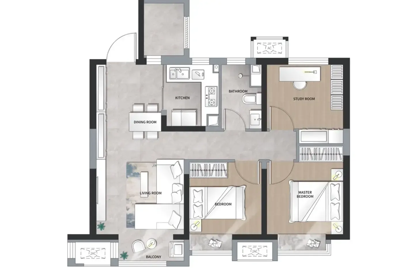 更绝的是这个户型的弹性设计:客厅开间3.6米却能做满墙书柜,次卧用玻璃推拉门实现可分可合。最让我心动的是那个4.2米景观阳台,正对着社区中央的银杏大道,销售说秋天能在家看金色落叶雨。