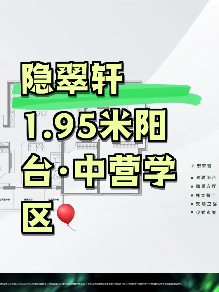深耕地产20年,最近被隐翠轩的阳台设计惊到了——1.95米进深的开放式阳台在南开新盘中确实罕见(敲黑板划重点!)实测摆下咖啡桌+绿植墙后还能健步走,但要注意冬季保暖需自费升级。