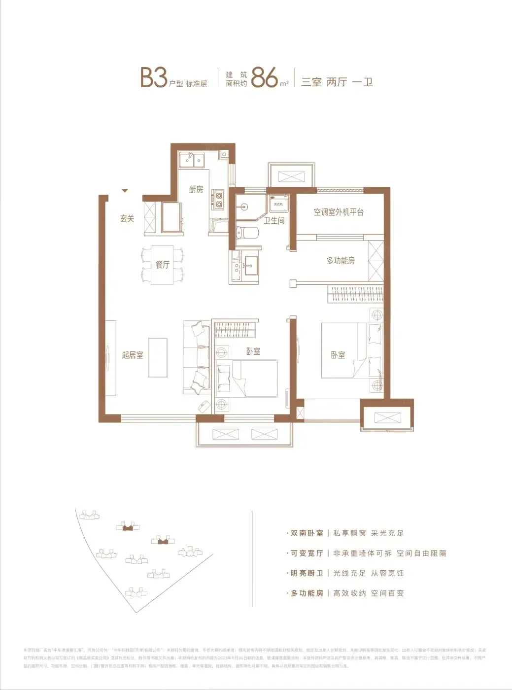 ❷ 精装现房玩真的:见过提前90天交房的开发商吗?项目一期力争2025年提前交付,二期更是把架空层做成4.0版泛会所,实测86㎡三居主卧竟能塞下双人床+婴儿床+五斗柜。