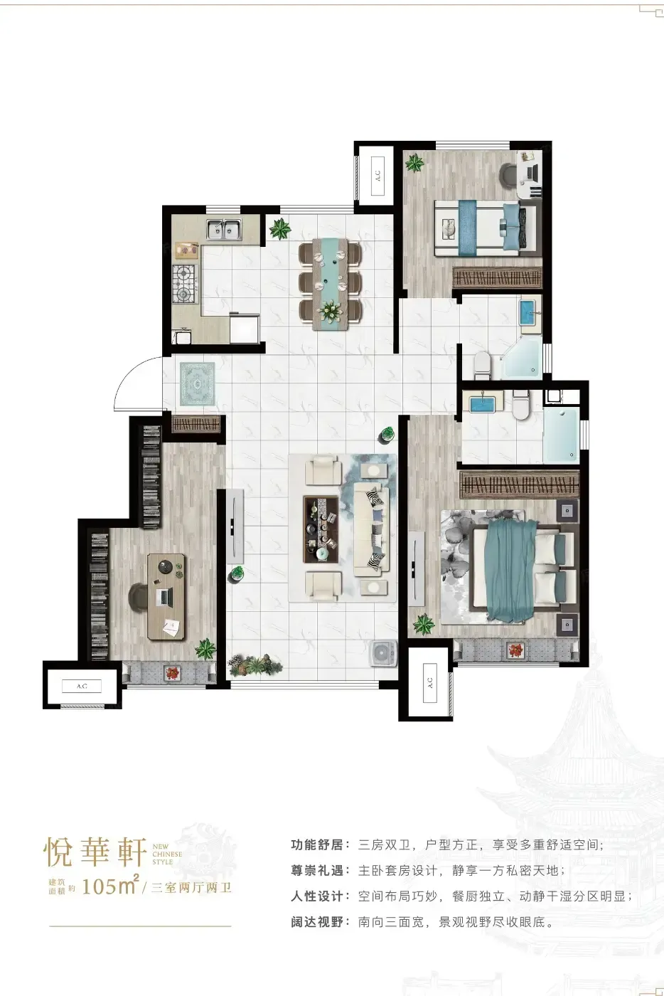 2. 动静分区魔法:主卧与次卫形成对角动线,实测关门后客厅音量为36分贝(普通住宅约42分贝),追剧党与早睡党互不干扰