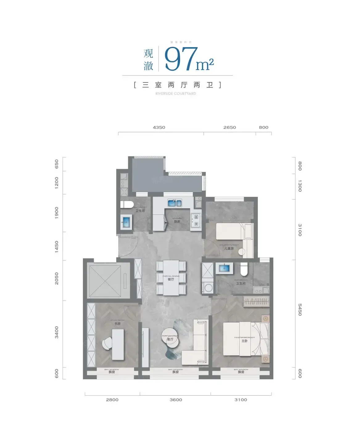 动静分区的户型设计有点东西,97㎡三居竟然塞下双卫!但北向次卧进深稍显局促,更适合改造成书房或儿童游戏区。飘窗咖啡角的改造空间倒是很大,2.22米层高能玩出loft感。