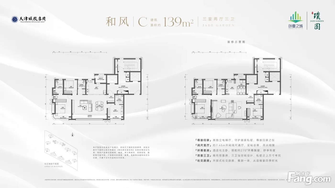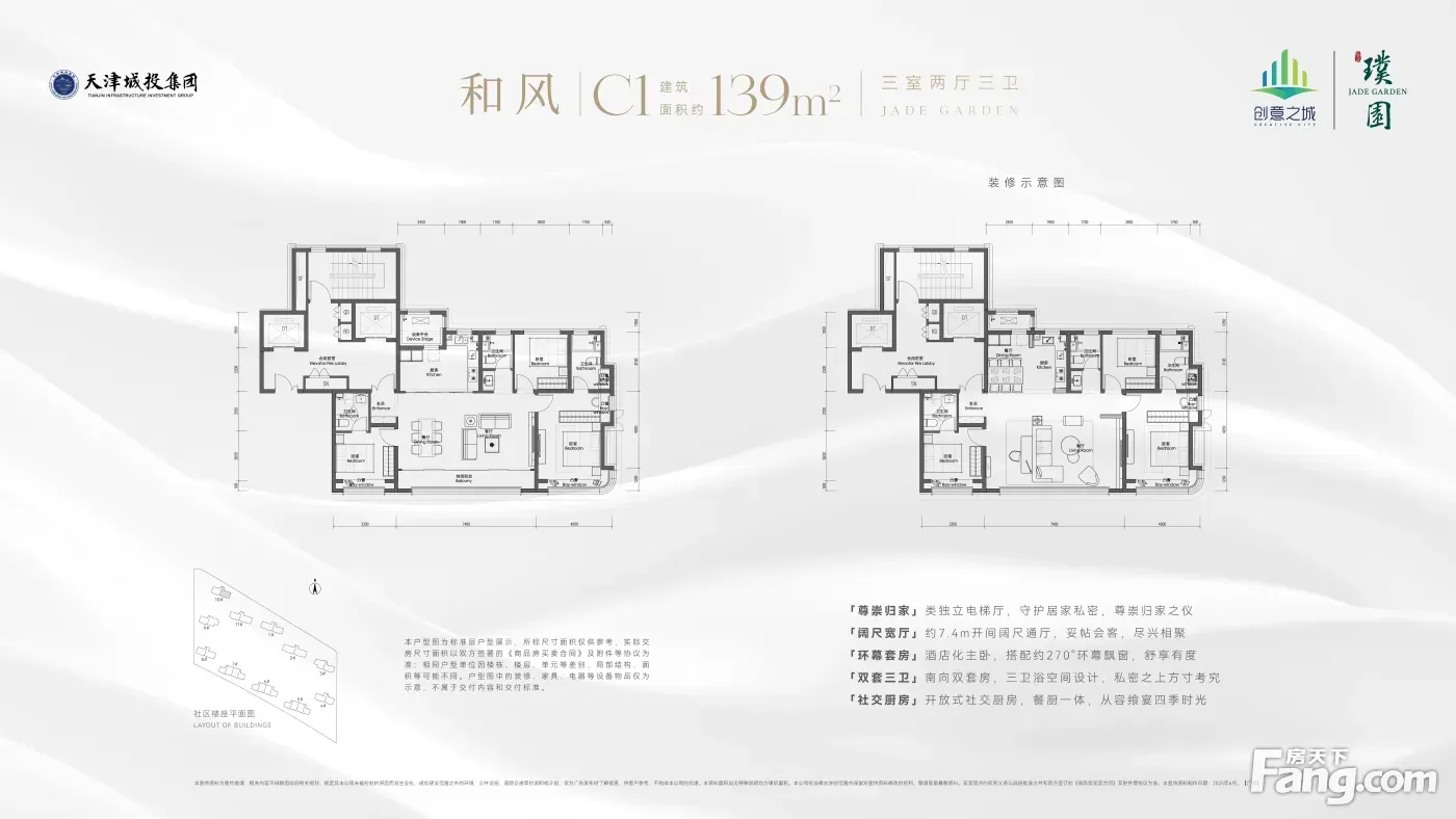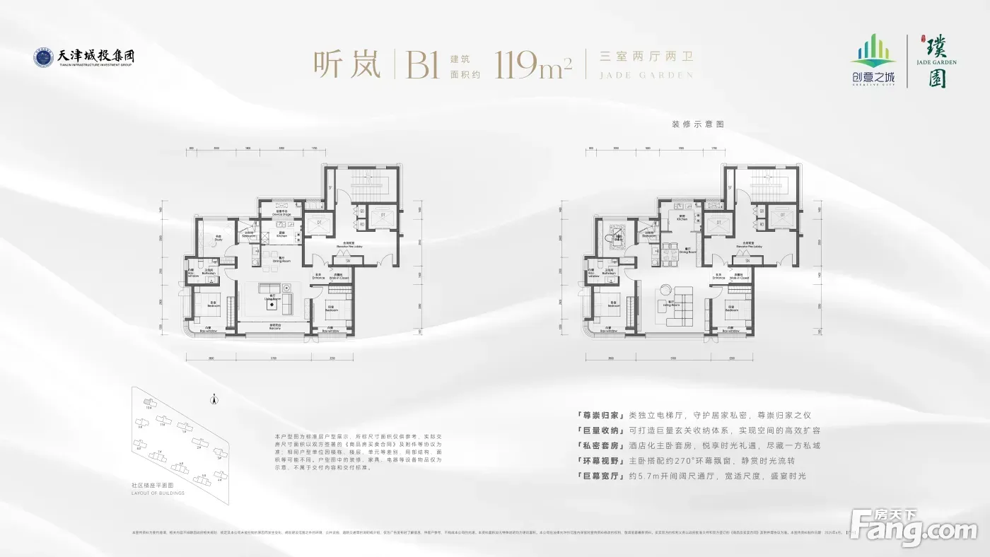 改善首选:开敞阳台、架空层、流云立面、空中花园、标准层高3.1m、双地铁双医院双学校。首开户型小高层119-139-168㎡