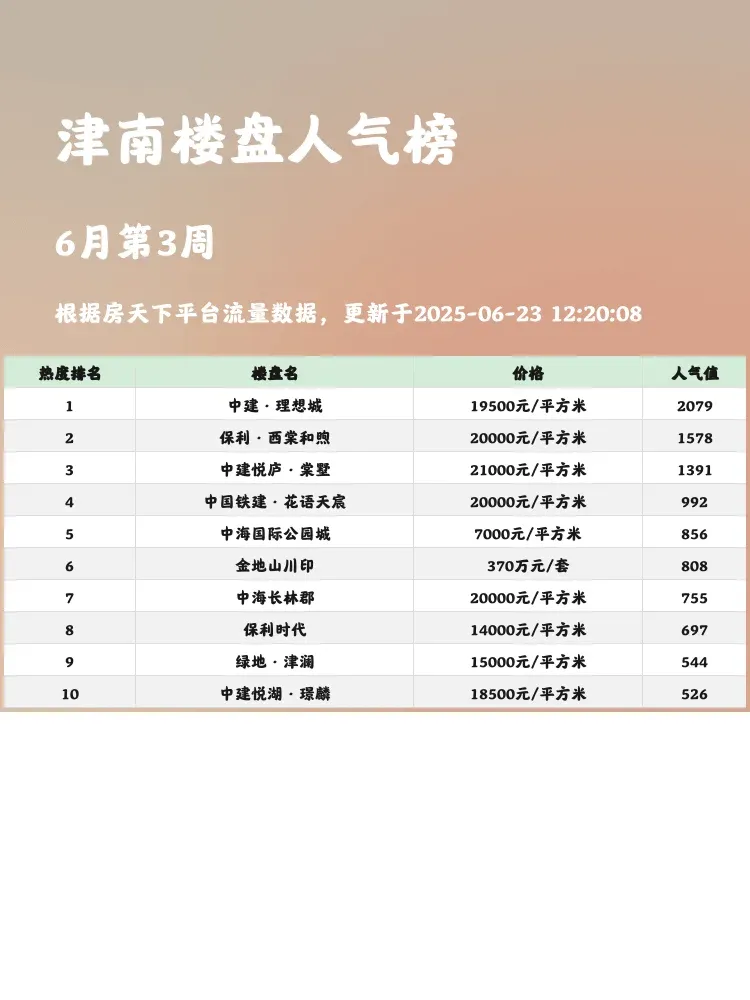 买房选房看榜单准没错!🏆人气楼盘榜单能直观反映市场热度,跟着买不容易踩雷~津南作为天津置业热门区域,地铁、教育、价格是购房者最关注的三大要素✨今天就带大家看看津南最火的3个楼盘,优缺点全解析!