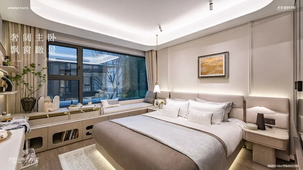 超大主卧 尽显奢视:卧室约18平米双南向布局,600进深的深度南向飘窗,皆享充沛采光,让全家人的日常阳光满溢