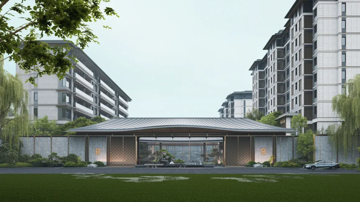 社区大门是这幅山水长卷的起笔,在“卷”大门已经成为楼市“潜规则”的当下,尽管已经有所准备,但绿城·桃溪雲境的大门规格依然令人咋舌。超过30米的面宽,高门大院的气韵倾泻而出。