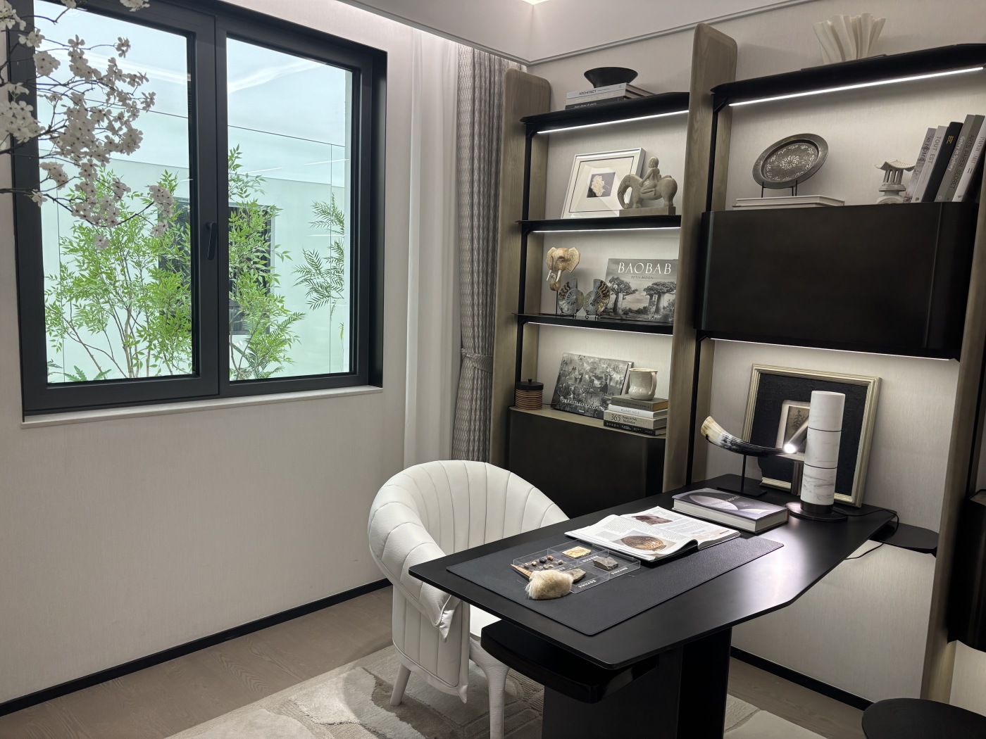 ①120㎡三居户型,外跨阳台+书房双赠送近15㎡,综合得房率堪比普通户型140㎡。主卫四件套配置+双台盆,台面甚至能放得下美容仪套装,这些细节诠释了中海玖系的顶配标准。