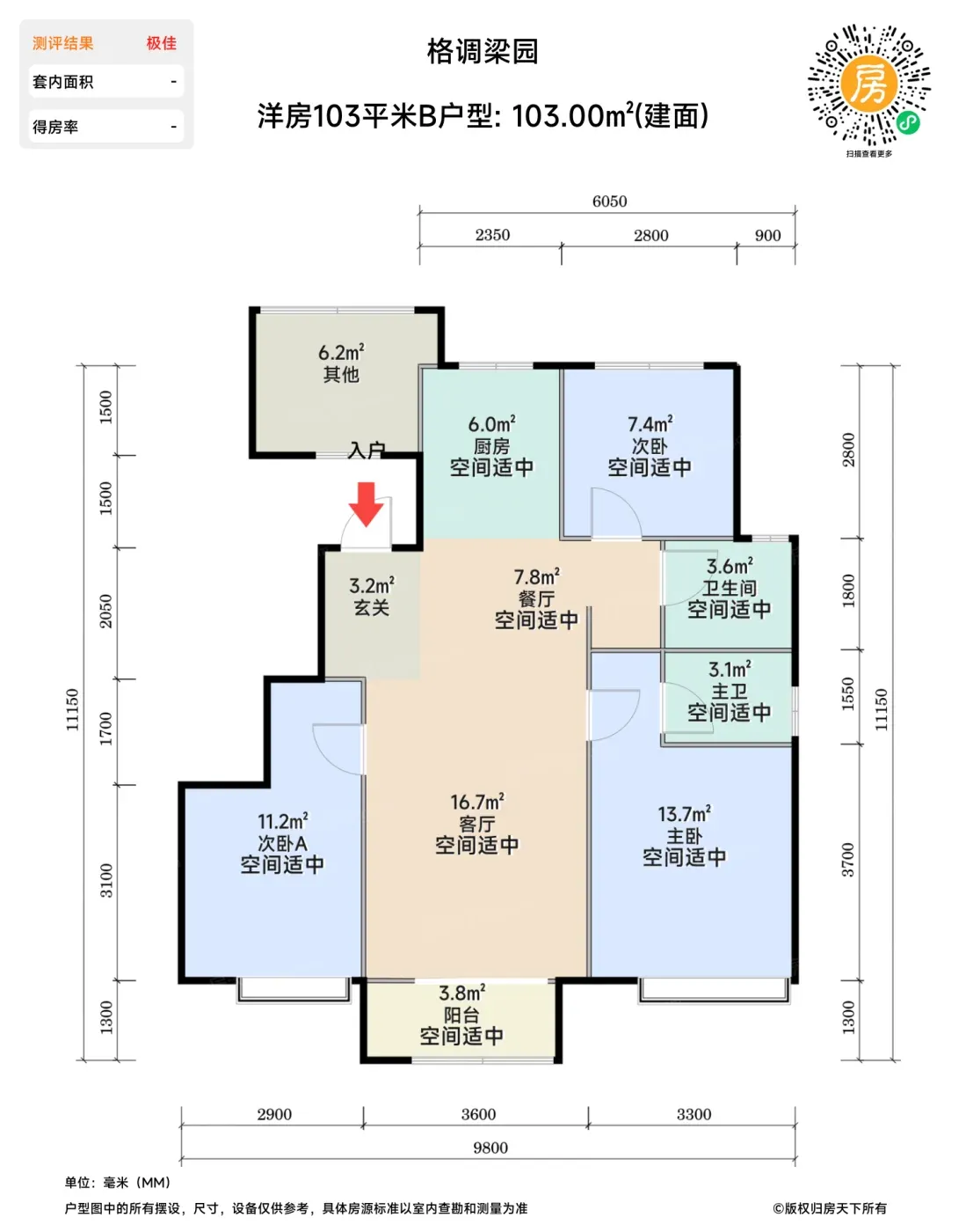 建筑规划采用1.74低容积率与30%绿化率配置,主力产品包含三大户型类别:经济型98-103㎡产品设置三分离卫浴与观景飘窗;改善型130-147㎡户型配置双衣帽间与家政间;188-240㎡平墅产品实现双套间设计,其中240㎡户型9.1分的空间评分值得关注。