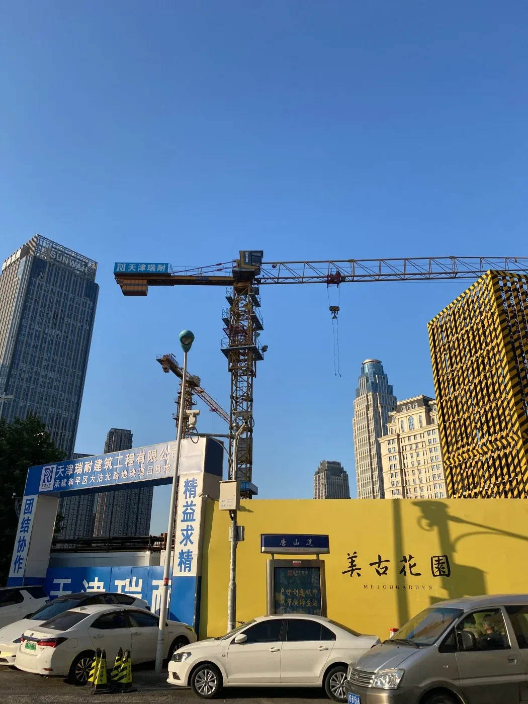 今天实地探访了和平区热门新盘——信达格调·美古花园!🏗️ 项目位于唐山道与建设路交口,现场实拍发现外立面已初现雏形,最新工程进度图直击~📸 作为城市中心地铁沿线住宅,周边生活氛围浓厚,售楼处沙盘显示2#楼为2026年底交付主力楼栋。开发商信达置业透露,目前主推毛坯与带装修两种选择,洋房产品尤为亮眼!✨