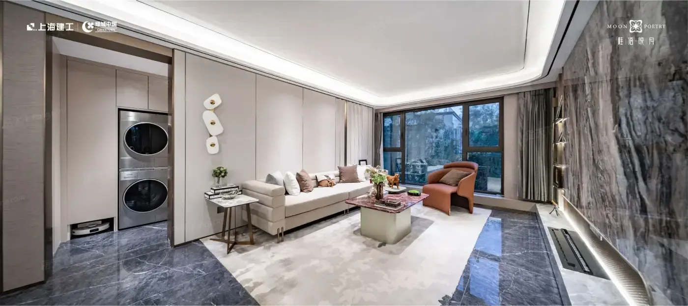 作为运河边的新中式楼盘,桂语映月把自然装进窗框的操作确实惊艳。85㎡户型能在阳台打造咖啡角,130㎡户型直接实现书房飘窗三面采光。但最绝的还是他们的景观设计: