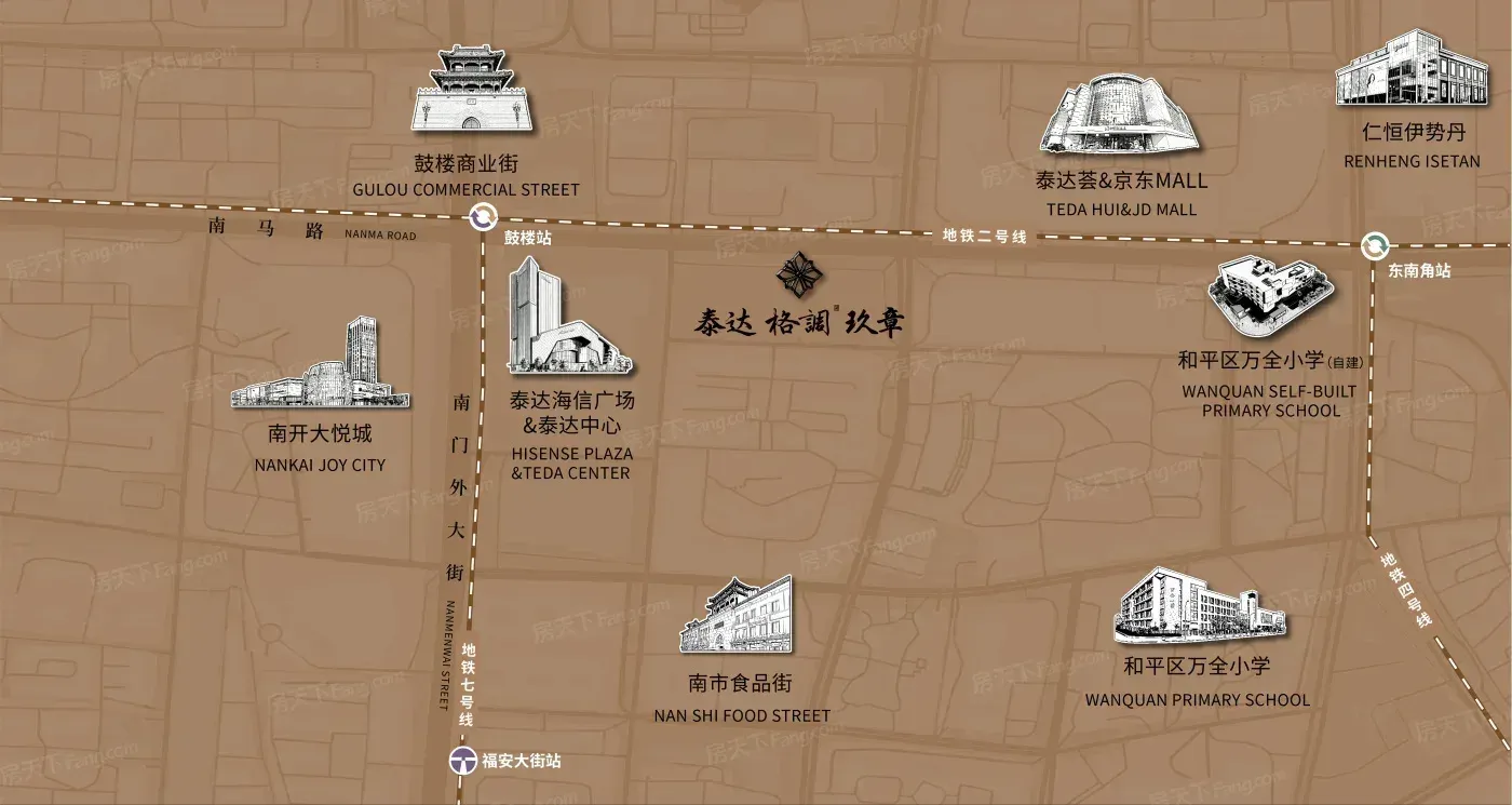 项目选址和平区核心地段,紧邻南马路与庆善大街主干道,周边商业及市政配套成熟度高。