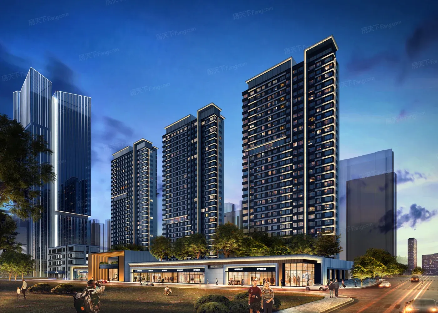 曝光的公区及大堂设计彰显轻奢调性,夜景与星空顶效果图暗示项目定位偏改善型需求。