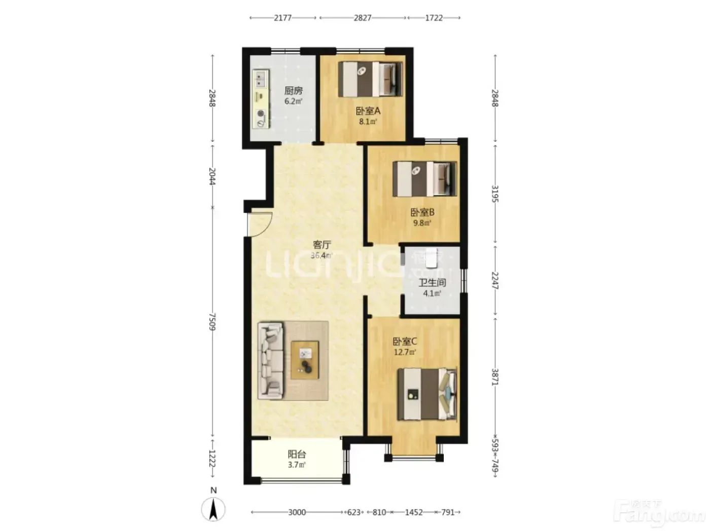 ✨ 两个次卧都不小,孩子老人住着都宽敞