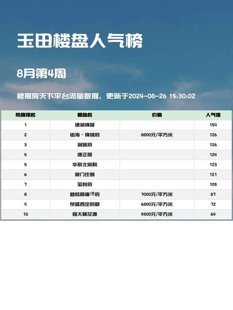✨在选房的过程中,了解人气楼盘榜单至关重要!🌟这些榜单不仅能反映楼盘的热度,还能为购房者提供宝贵的购房参考信息。无论是交通、教育配套,还是户型设计等,都能帮助你更好地做出选择。今天,就来看看玉田人气楼盘榜单的前3名吧!