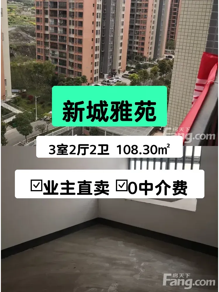 现有万州新田镇五新路新城雅苑小区电梯房一套出售,产权面积108平米,三室两厅一厨两卫,10楼。房屋采光良好,周围环境安静,临近学校,有意者请联系,必复。