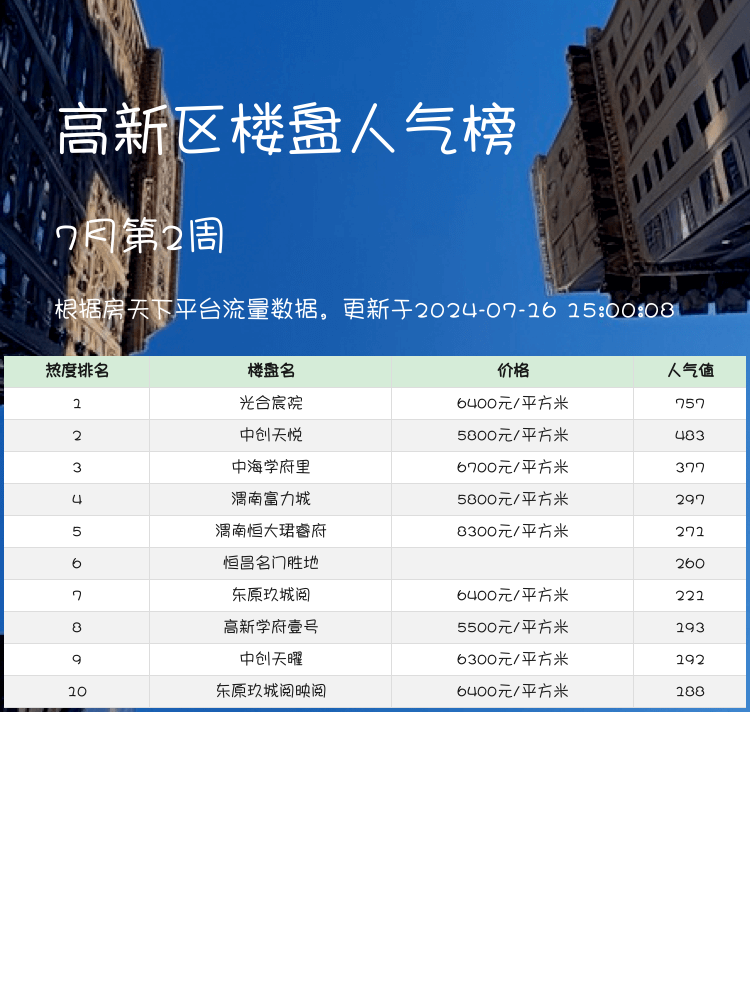 🔥高新区人气楼盘榜前3名大揭晓: