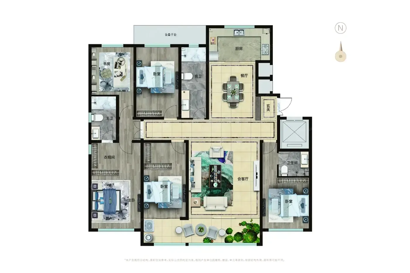 212㎡户型虽做到四室分离,但次卫距老人房隔两堵墙。实测夜间走动需经过7.2米走廊,建议带老人实地体验动线