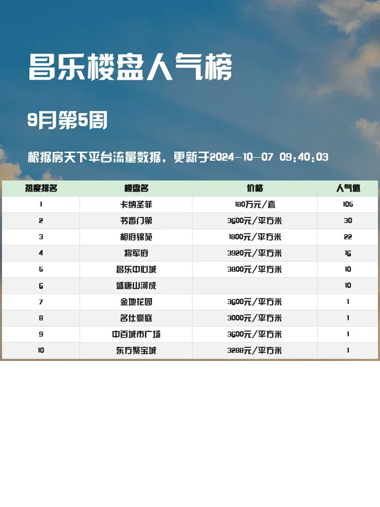 在购房市场中,选择合适的楼盘可以帮助我们获得更好的生活品质✨。通过人气楼盘榜单,我们能更清晰地了解当前房市的热度与趋势,从而做出更明智的购房决策。尤其是在如今的市场环境下,明智选房就是为未来投资,以下是昌乐地区最受欢迎的楼盘前三名,快来看看吧~👀