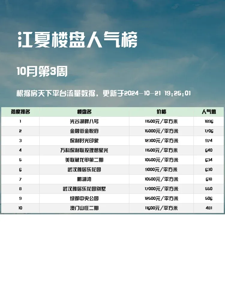 ✨在选择新家时,一个优质楼盘榜单能为购房者提供有力的参考。面对琳琅满目的房源信息,如何根据生活需求、预算和未来升值潜力精准挑选,是每位购房者的核心关注。今天,我们就来看看江夏区域的人气楼盘榜单,给大家买房选房提供一些实用信息。